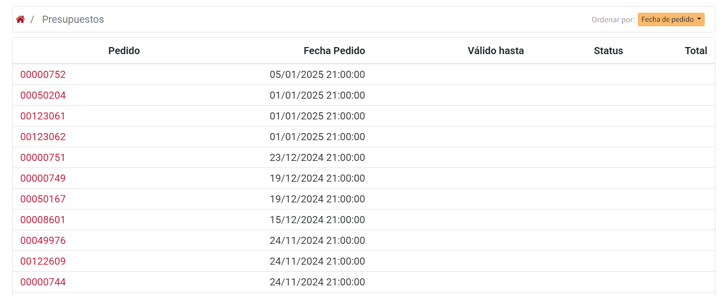 - Válido hasta: Fecha de validez del pedido.