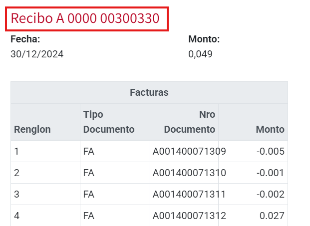 5. Para ver más información de un recibo en detalle, haz clic en el número del recibo que aparece en rojo.